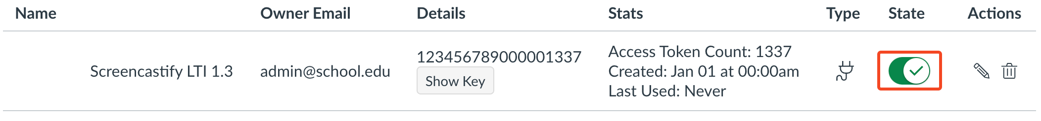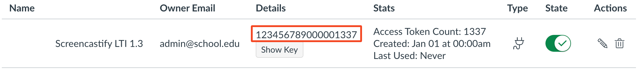 a. Key Name - Enter a key name (e.g.,Screencastify LTI 1.3).