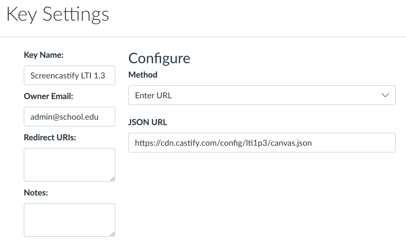 d. JSON URL - Enter https://cdn.castify.com/config/lti1p3/canvas.json