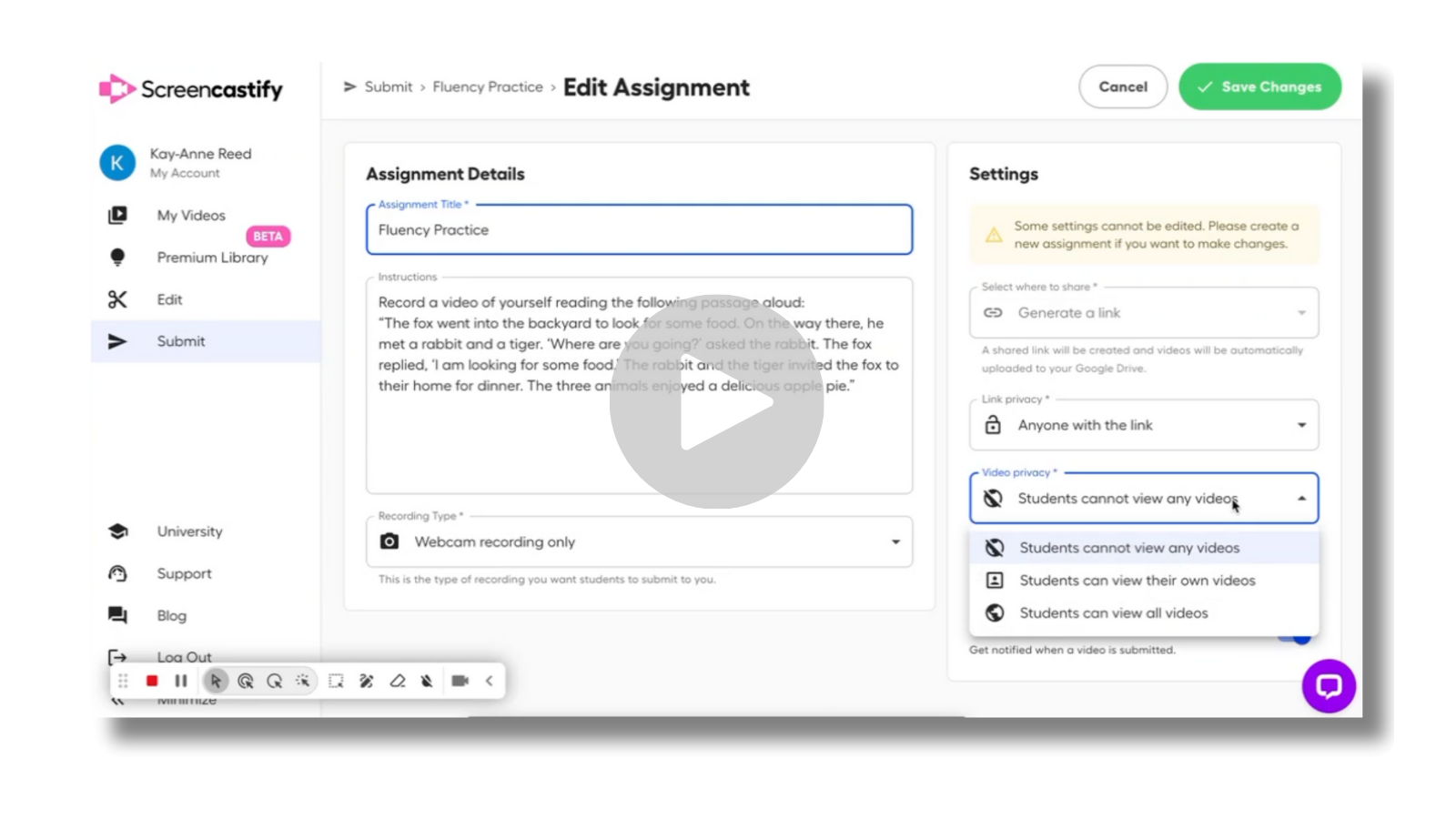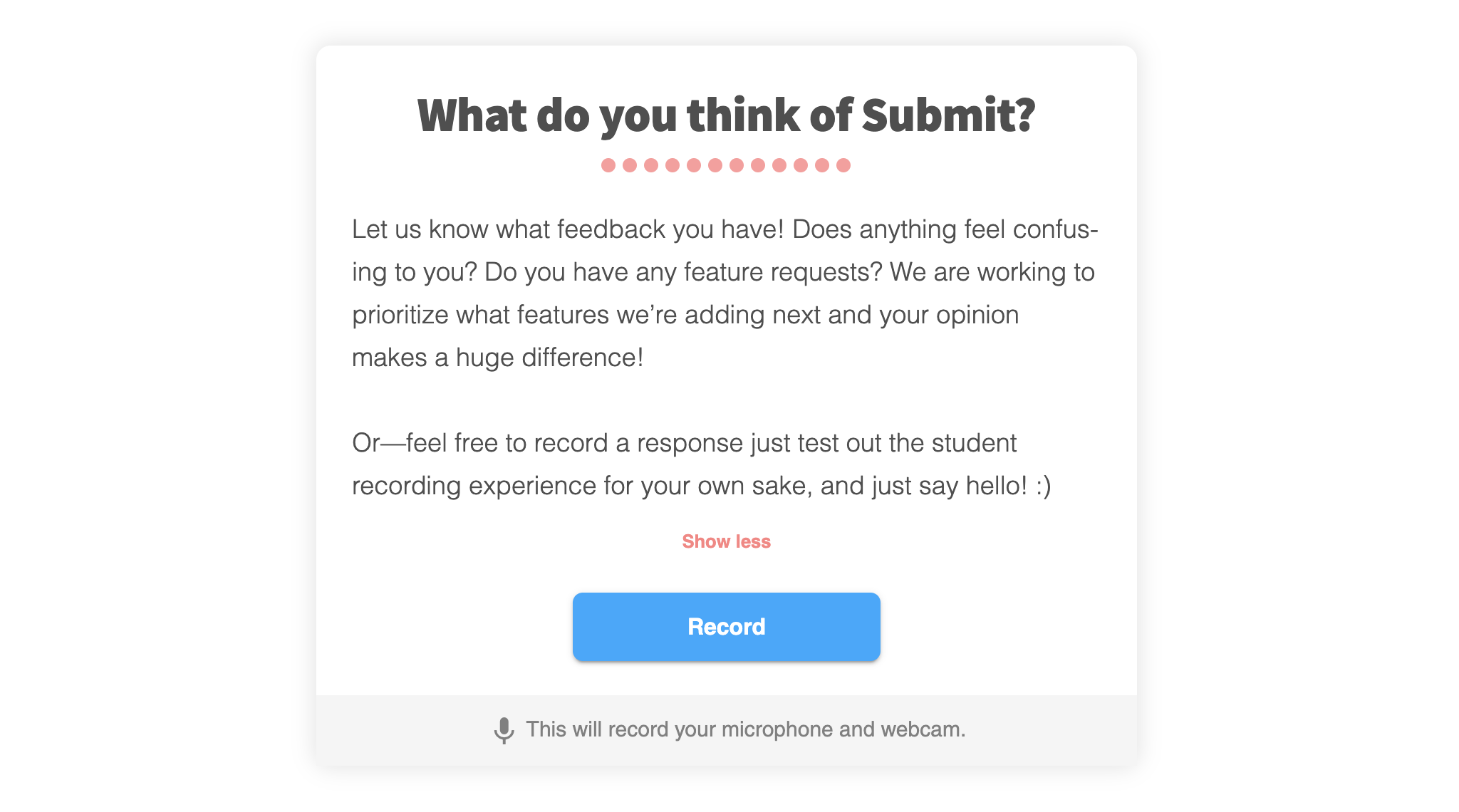 In addition, we’ve created this quick demo for you to see a student’s current user experience when you enable this setting. Be on the lookout as we add the ability for students to comment on each others videos later this year. 👀