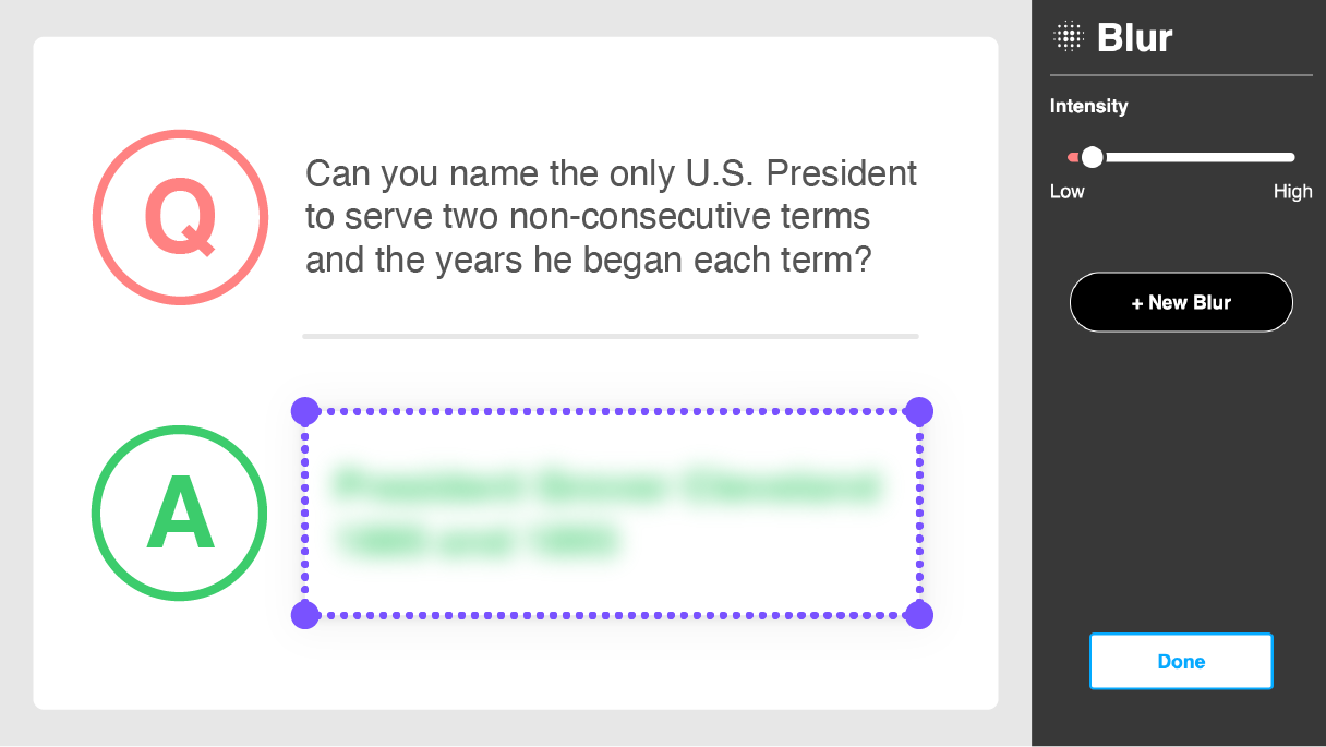 There are tons of tools available in the editor, but one of the most versatile is the blur tool. You can use this tool to build suspense, create formative and summative assessments, and protect student and teacher privacy.